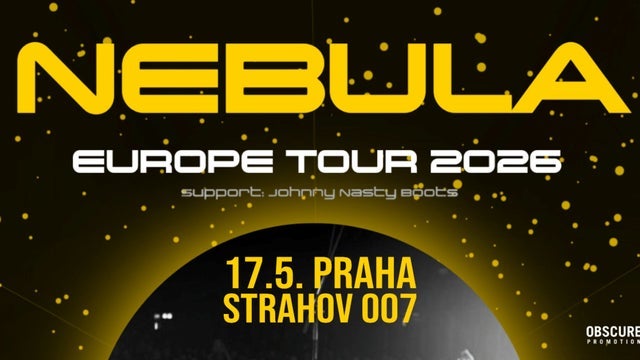 Klub 007 Strahov, Praha 6 Chaloupeckého 1915/7, , Praha 6, Czech RepublicUdálost ,Nebula, Johnny Nasty Boots,Nebula se bude konat dne 17/05/2026, s počátečním časem 19:00:00 v Klub 007 Strahov